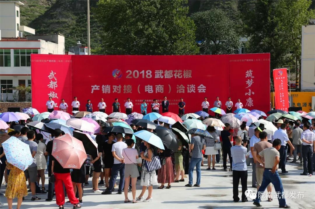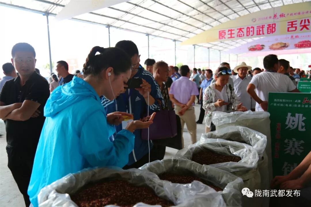 花开妍妍绽异彩,椒香阵阵迎宾朋。7月18日,2018武都花椒产销对接(电商)洽谈会在陇南特色农产品交易市场开幕。市委副书记刘永升致辞,市委常委、武都区委书记田广慈就2018•武都花椒产销对接(电商)洽谈会有关情况作了介绍,武都区委副书记、政府区长肖庆康宣布开幕。