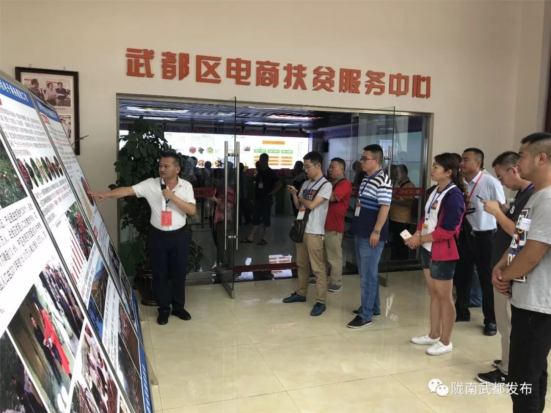 ▲来自全国各地的宾客、媒体记者们参观武都区电商扶贫服务中心