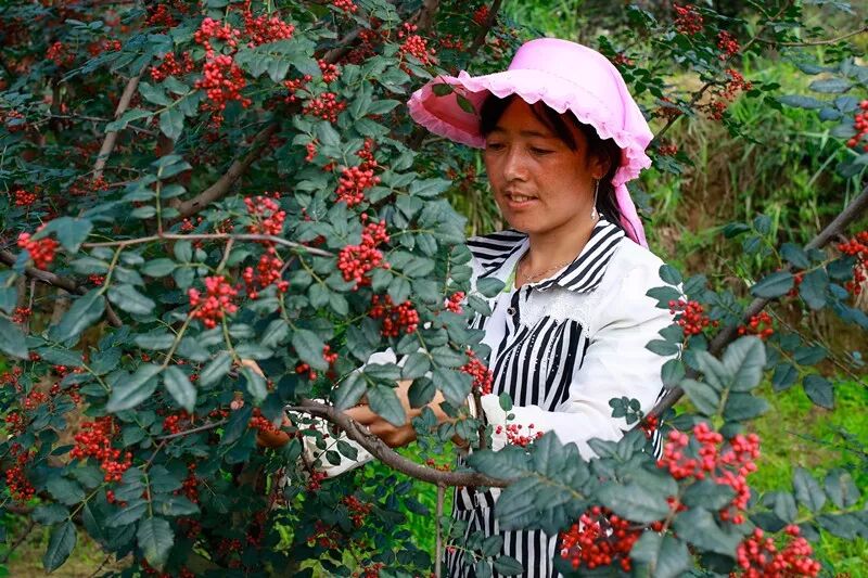 ▲中国文联主席、中国作协主席铁凝来到武都区沙坪流域花椒产业基地,她一边亲手体验采摘花椒,一边说:“我以前在其他地方也见过种植的花椒,但没见过这么好的,这里的花椒可真香啊!”