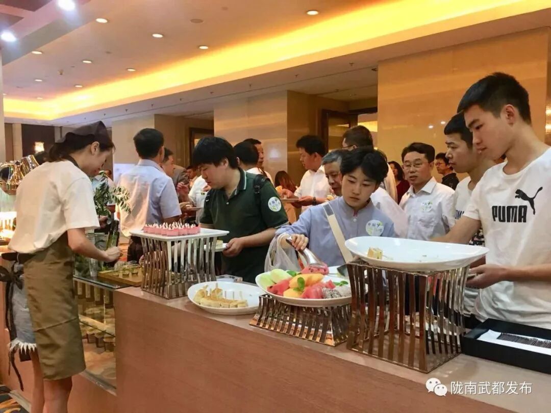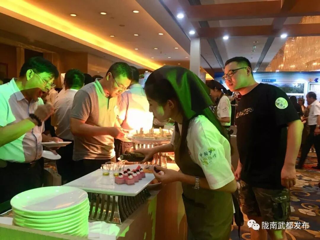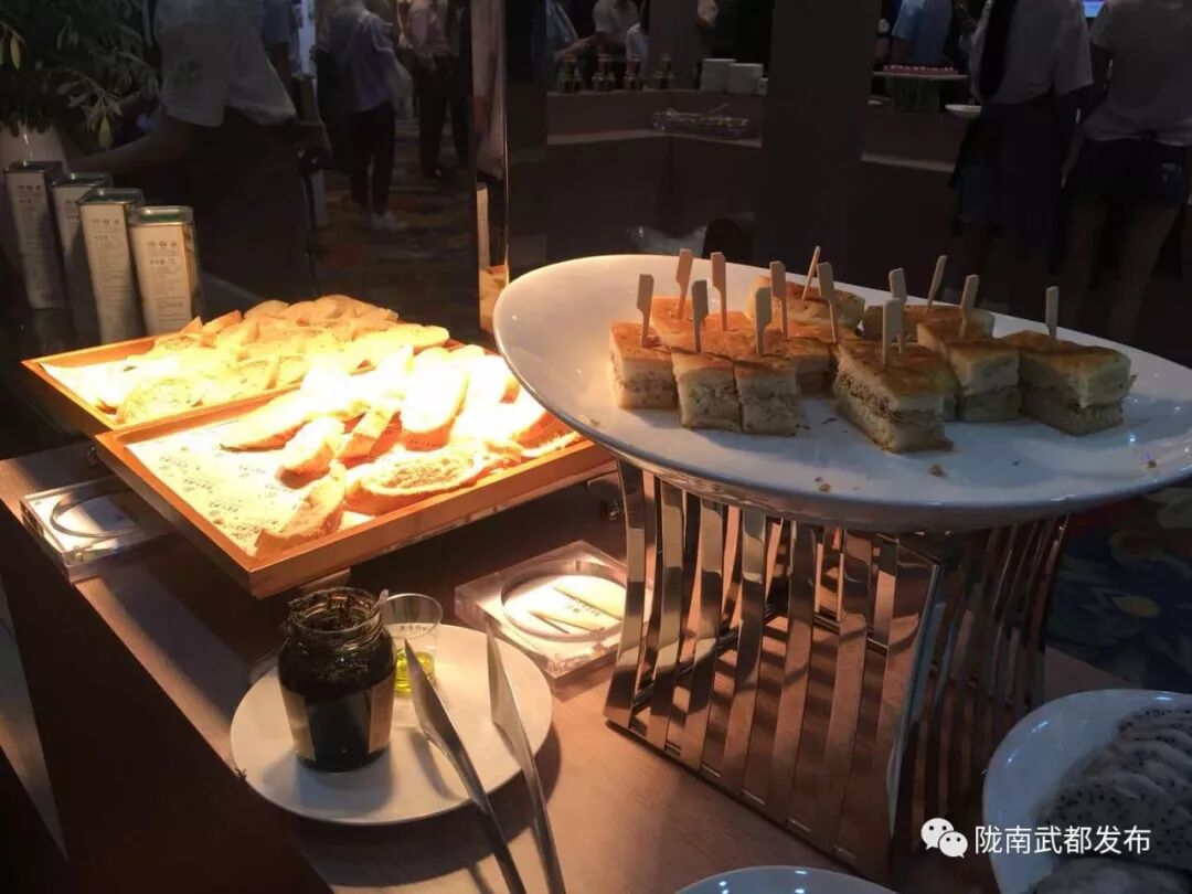 与会嘉宾在发布会结束后,参观特色产业展区,品鉴陇南橄榄油和品尝橄榄特色自助餐。