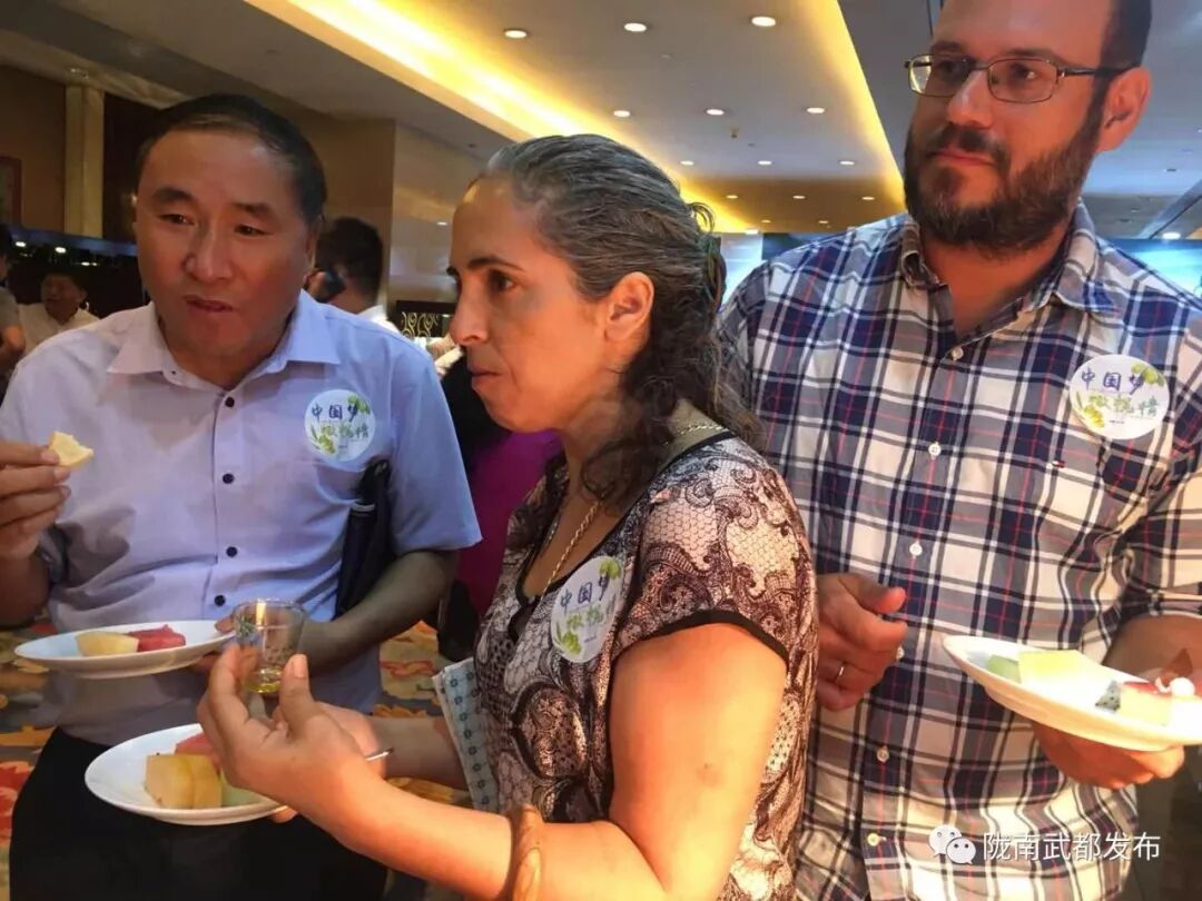 市委书记孙雪涛,市委常委、区委书记田广慈与以色列品油师、国际橄榄油大赛评委亲切交谈,听取她对陇南橄榄油的中肯评价