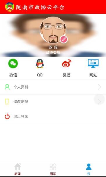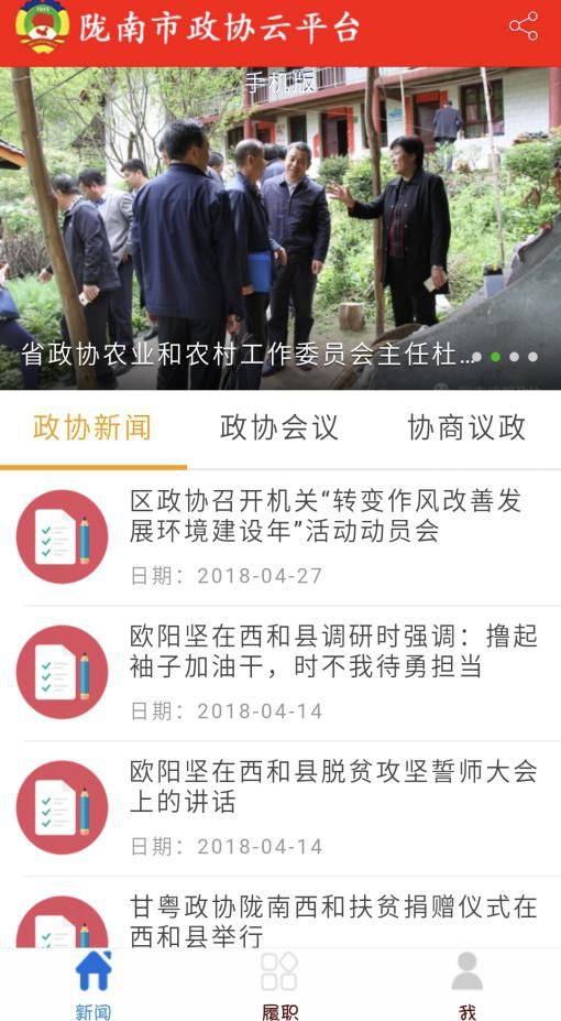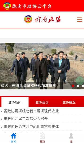 2、手机客户端安装好后,打开手机客户端,市政协委员可市区系统相互转化登录查看市或区政协工作动态,如下图: