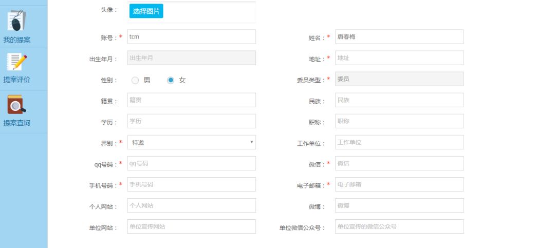 点击“个人资料”,可以对当前登录的委员个人信息进行修改和完善