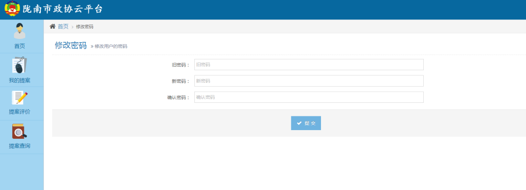 点击“修改密码”,可以对当前登录委员的登录密码进行修改: