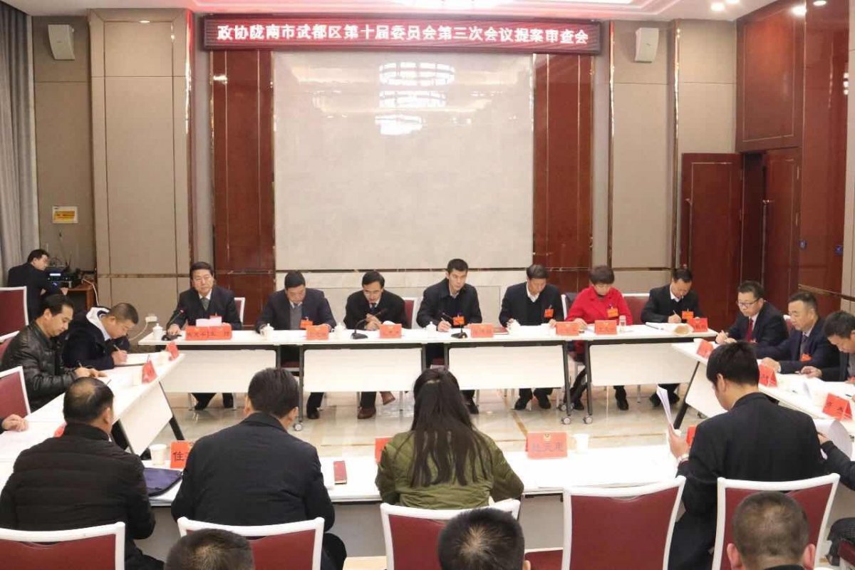 1月7日,政协陇南市武都区第十届委员会第三次会议召开提案审查会议。区委常委、区政府常务副区长张建强应邀出席会议,区政协副主席张志杰、王安平、石银林、王文云、宗毅翔出席会议。区政府办、区督考局、区发改局等15个单位的负责人应邀参加会议。区政协副主席、提案审查委员会主任戴武平主持会议。