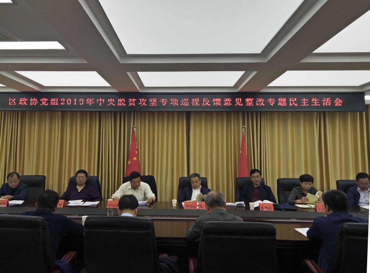 4月8日,区政协党组召开2019年中央脱贫攻坚专项巡视反馈意见整改专题民主生活会。区政协党组书记、主席贾周云主持会议。区政协党组成员、区政协副主席石迎琳、王文云、戴武平参加会议,副主席张志杰、区委组织部副部长丁维全、区纪委监委第二派驻组组长冯继文及区政协机关党支部支委成员、各专委会主任列席会议。