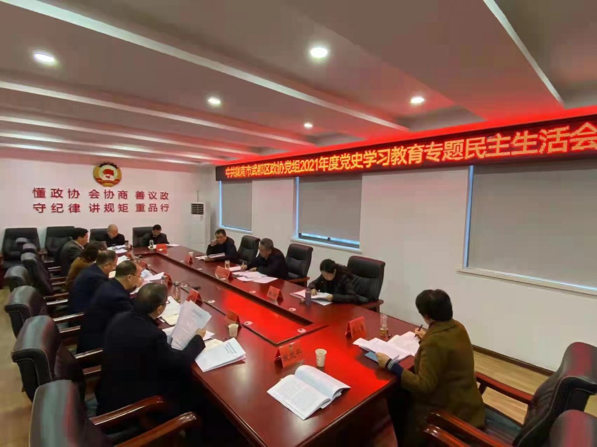 1月25日,区政协党组召开党史学习教育专题民主生活会。党组书记、主席任文海主持会议,党组副书记、副主席任亚民,党组成员、副主席李媛、冯志强参加会议。区委组织部副部长陈辉、区纪委常委、监委委员郭涛应邀出席指导会议。区政协副主席马鹏飞、肖碧宁,二级调研员王文云,三级调研员戴武平、宗毅翔及区政协办公室负责同志列席会议。