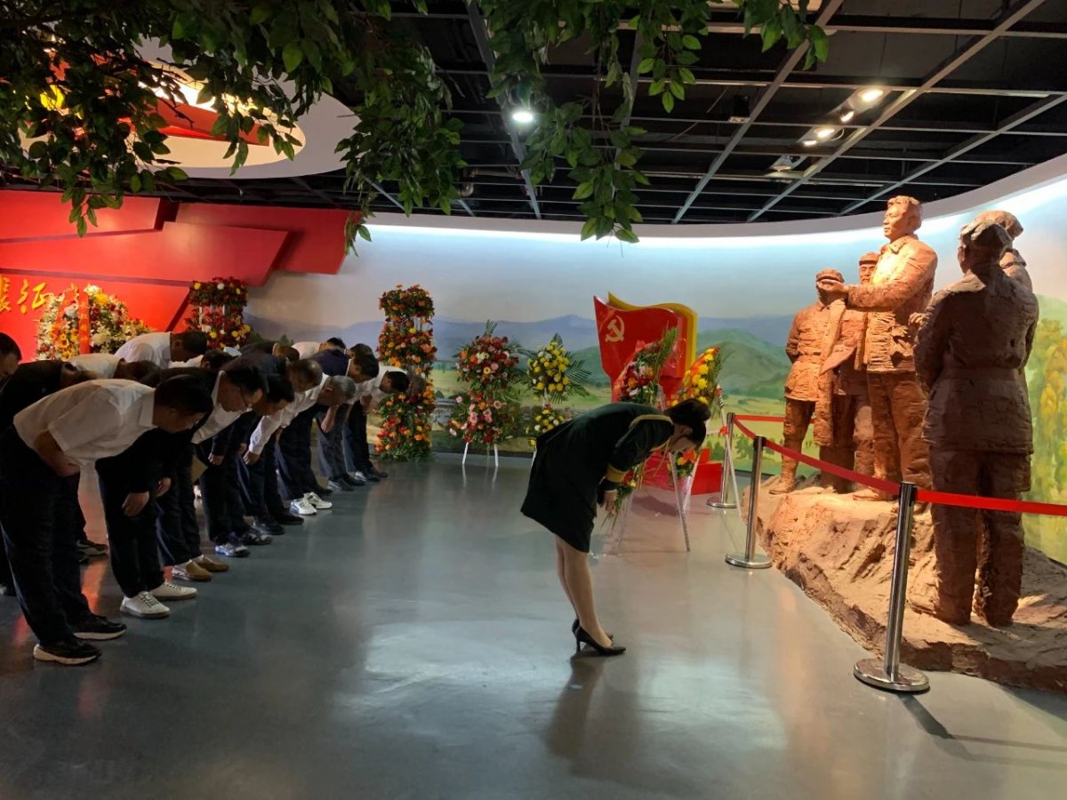 在哈达铺红军长征纪念馆浮雕前,向革命先烈敬献了花篮,全体党员肃立鞠躬致敬。随后,在讲解员的引导下,全体党员认真聆听革命先烈在哈达铺的长征故事,深刻接受了一次党性教育与思想洗礼,进一步筑牢了共产主义远大理想和中国特色社会主义共同理想。