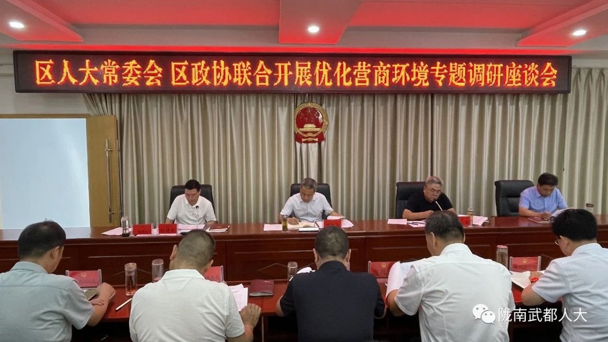 8月1日,区人大常委会、区政协优化营商环境专题座谈会召开,区人大常委会主任贾周云、区政协主席任文海出席并讲话。会议由区人大常委会副主任孙建威主持,区政协副主席马鹏飞、区直相关部门负责人、区人大部分代表、区政协部分委员参加会议。