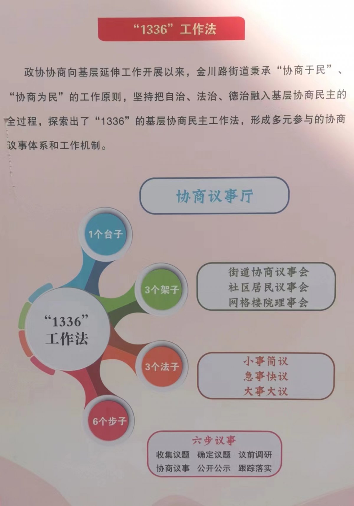 金川路街道、金水里社区是2022年金昌市政协协商向基层延伸工作先进集体,近年来,全面推进街道“1336”、社区“1236”的基层协商民主工作法。形成多元参与的协商仪事体系和工作机制。