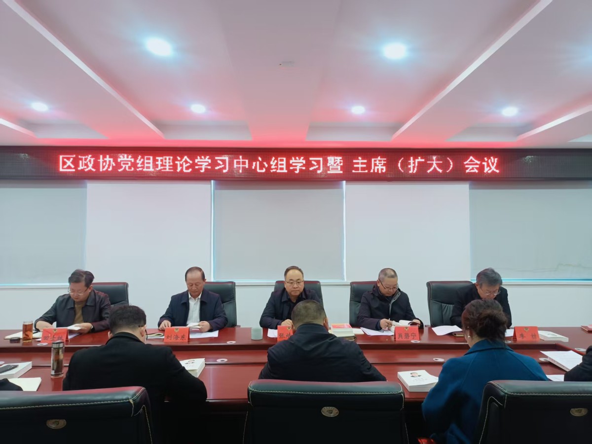 会议强调,要持续深入学习《党的二十届四中全会〈建议〉学习辅导百问》《习近平谈治国理政》(第五卷)及《习近平文化思想学习纲要》,深刻把握其精神实质和核心要义,坚持读原著、学原文、悟原理,切实用党的创新理论武装头脑、指导实践、推动工作。要进一步压紧压实责任,高质量做好区政协十一届五次全会的各项筹备工作,在思想上高度重视,任务落实上责任到人、精准高效,确保大会的各项前期准备工作高质量推进。要持续加强理论学习,把学习成果不断转化为推动政协履职的实际行动,聚焦中央和省市部署要求以及全区当前的重点工作,全面完成好《区政协常委会2025年工作要点》安排部署的各项工作任务,扎实认真谋划好明年的工作,为推动区政协高效履职打下坚实的基础。