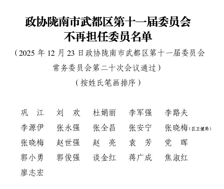 政协陇南市武都区第十一届委员会不再担任常务委员、委员及委员增补替补名单