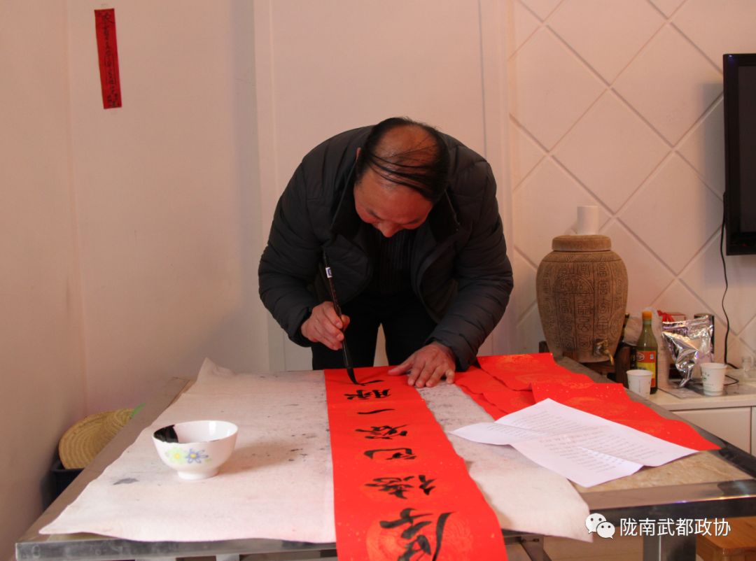 2月9日早晨,在前往五马镇的途中仍见厚厚的积雪,气温仍旧非常的低,但这丝毫没有减弱政协职工为村民送去祝福的热情。“锦凤呈祥龙献瑞,红梅贺岁桃迎春”、“撸起袖子加油干,勤劳致富奔小康”带着美好的新春祝愿,书法家们铺纸研墨、笔酣墨饱、一挥而就,浓浓的年味在他们的笔下蔓延开来,既有体现狗年辞旧迎新的美好祝愿,也有体现脱贫攻坚成果,反映经济繁荣发展的幸福美景,为即将到来的新春佳节增添了浓浓的喜庆氛围。活动中,政协职工共为村民创作了200余副春联和“福”字作品,受到群众的欢迎。
